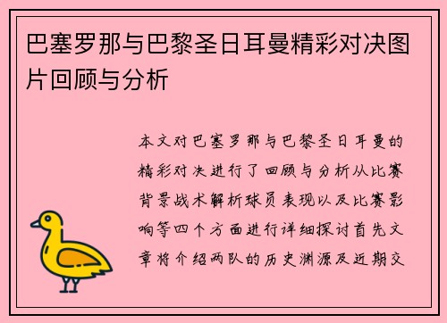 总而言之,无论是战术应用还是个别球员表现,本次较量都展现出顶级足球赛事所应具备的重要特质——竞争激烈与技术精湛。同时,它也启示我们,在体育竞技中,每一次交手都是学习和成长的重要契机。